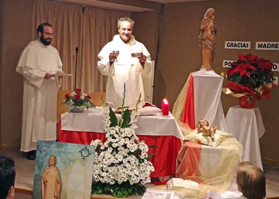 En este año nos acompañaron todas las residentes, la comunidad, la dirección, el personal de servicio y Félix Hernández, dominico que nos visitó junto con seis estudiantes. Nos hicieron vivir una Eucaristía reflexiva y amena para el recibimiento del Niño Jesús. Duran el evento nos amenizaron con sus guitarras y canciones acompañados por  Ana Gutiérrez residente de la Anunciata, con su clarinete y bonita voz. Entre otras piezas aplaudidas interpretaron un Ave María espectacular.