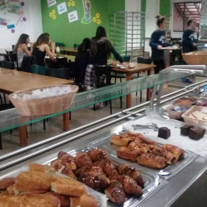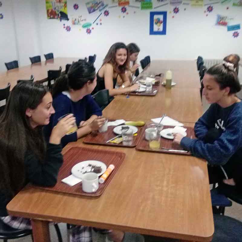 Algunas de las estudiantes de la residencia Anunciata desayunando. Un buen momento para reponer fuerzas para preparar exámenes.