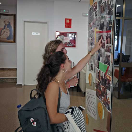 Las fotos del encuentro en Requena se han expuesto en el hall de la residencia Anunciata de Valencia.